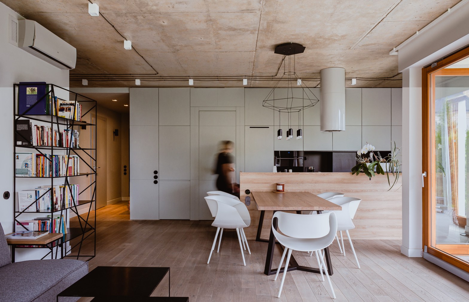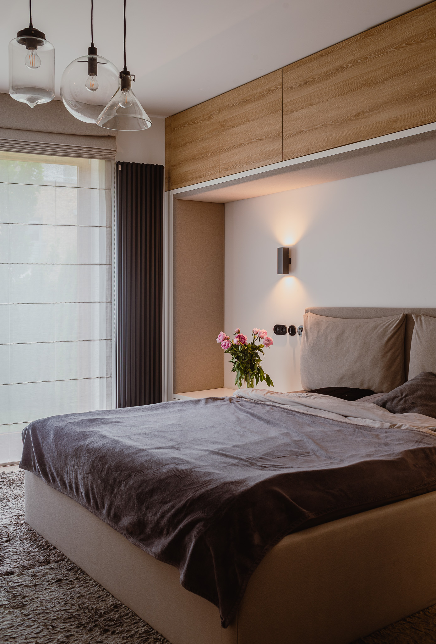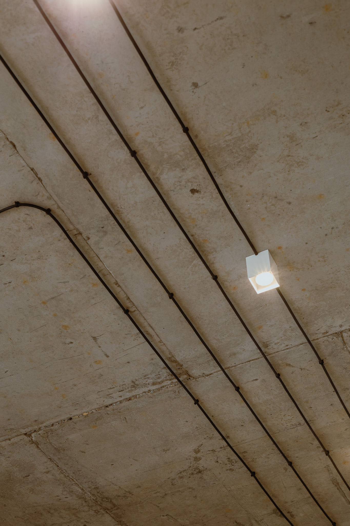 Ceiling made of polished concrete, the wiring left exposed and hidden door giving the space a modern edge. Mesmerizing interplay of light and shadow, lending an air of sophistication to the space. The bedroom, meanwhile, exudes a subtle elegance, with delicate touches that envelop one in serenity and calm. Photoshoot made for commercial purposes.